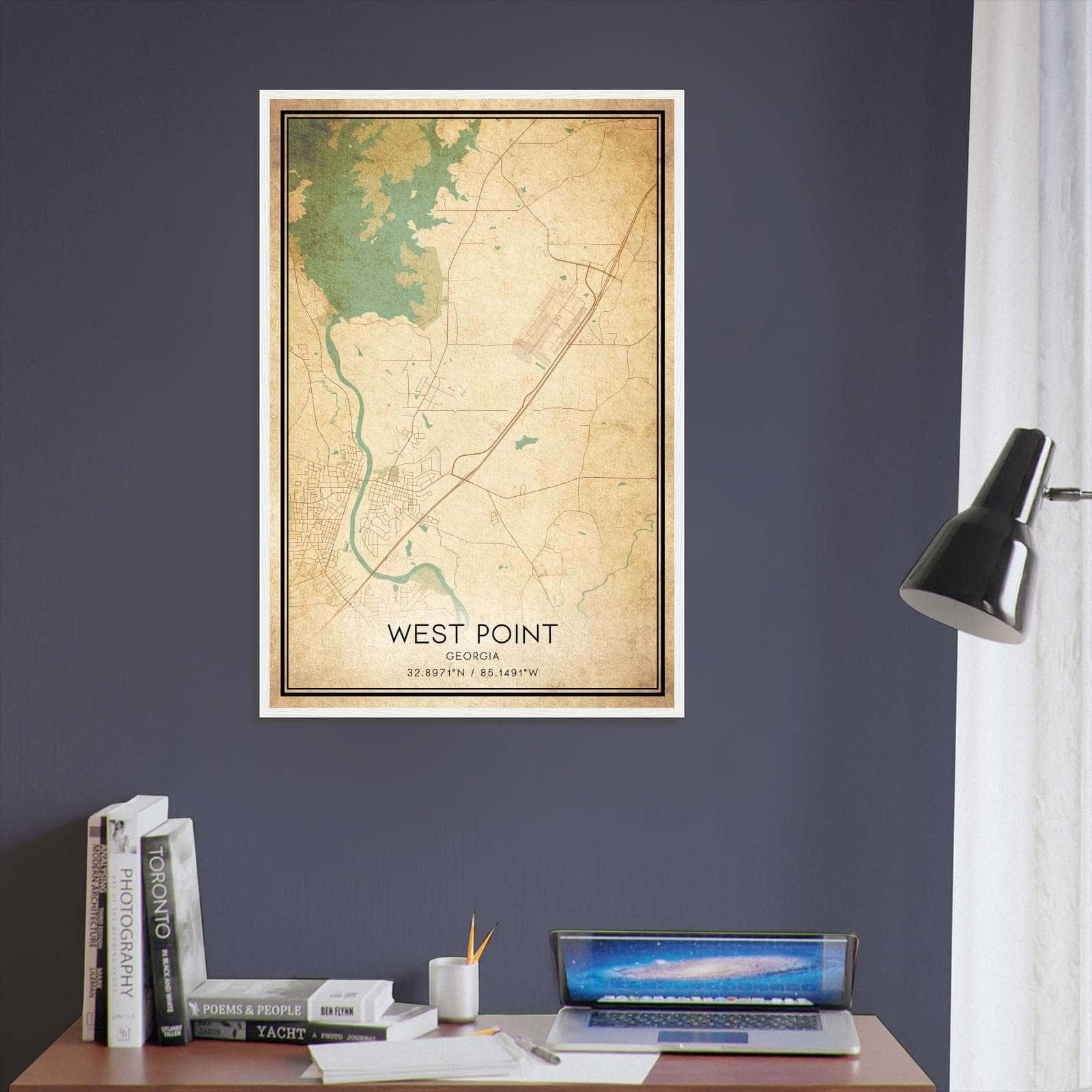 Vintage West Point Georgia Map Poster, West Point GA City Road Wall Art Print