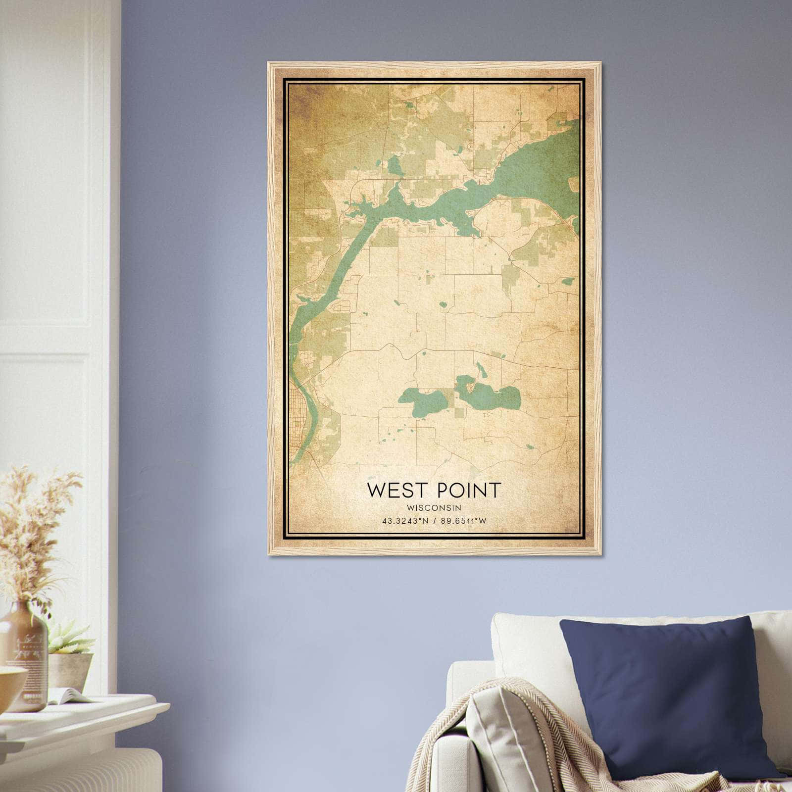 Vintage West Point Wisconsin Map Poster, West Point WI City Road Wall Art Print