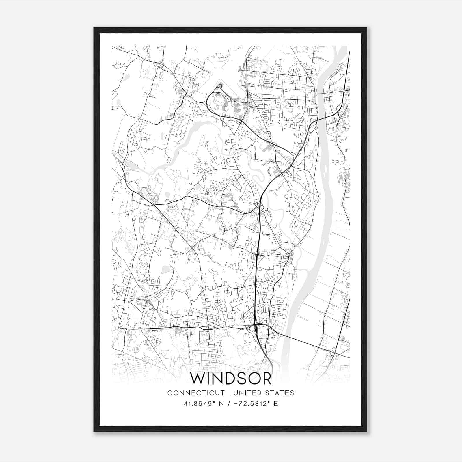 Vintage Windsor Connecticut Map Poster, Modern Home Decor Wall Art Print