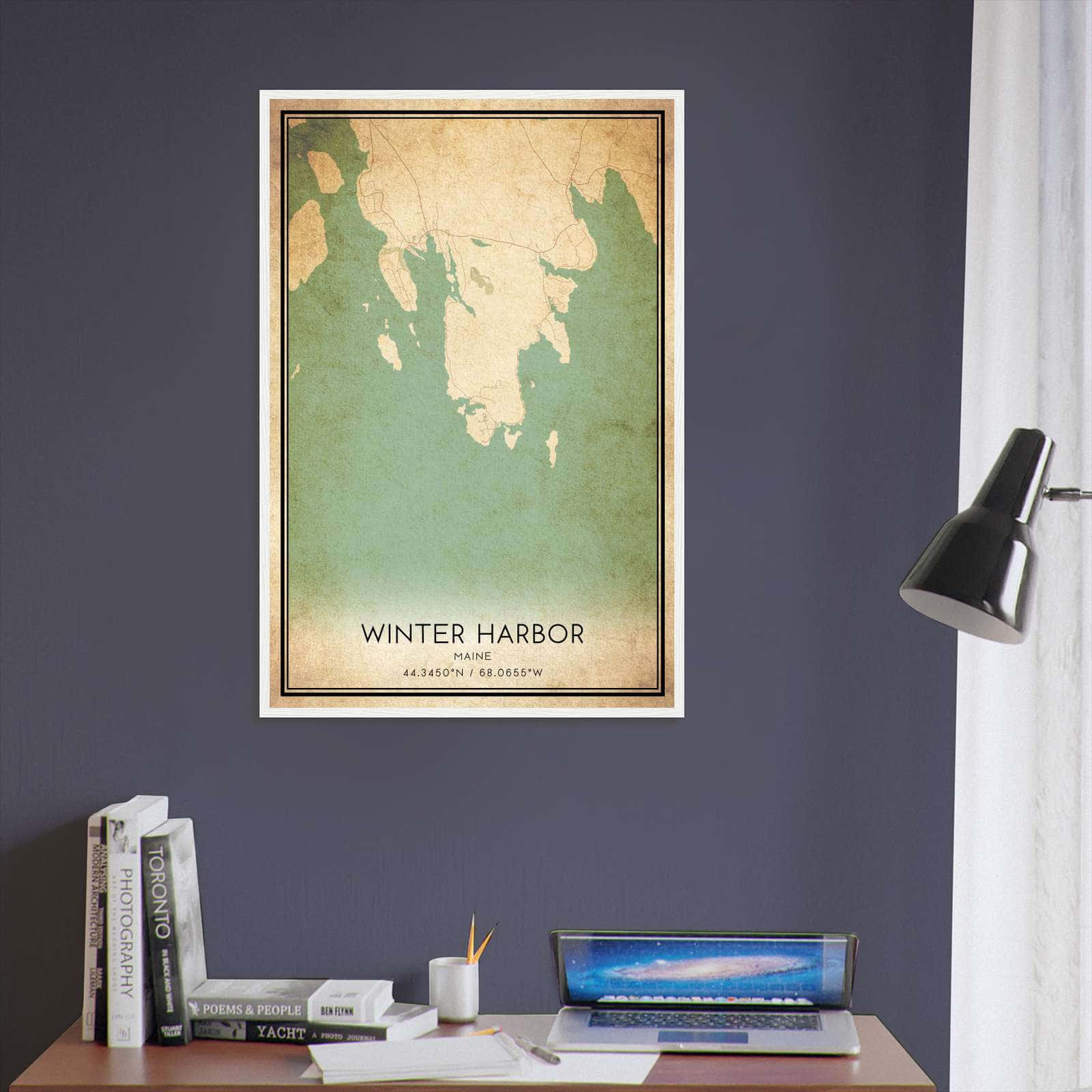 Get this Vintage Winter Harbor Map Poster today and add a unique touch to your living space!